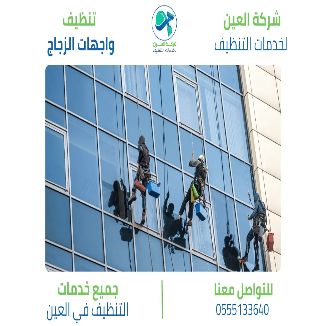 يمكنك التعامل مع شركة تنظيف واجهات زجاج بالعين لتنظيف واجهات الشركات والمصانع والعمائر وتقوم شركة العين بخدمة التنظيف وتلبي طلبات العملاء بأفضل جودة وفي أسرع وقت، إذ تستخدم الأدوات الحديثة التي تسهل هذه العملية كما أنهم يستخدمون مواد كيميائية ذات جودة عالية تنظف الزجاج تنظيف عميق بأمان وفاعلية كبيرة، وشركة العين هي شركة رائدة تقوم بهذا الأمر بأسعار تنافسية ليس لها مثيل وتعمل داخل العين وتقوم بتنفيذ الطلب في أسرع وقت ممكن.